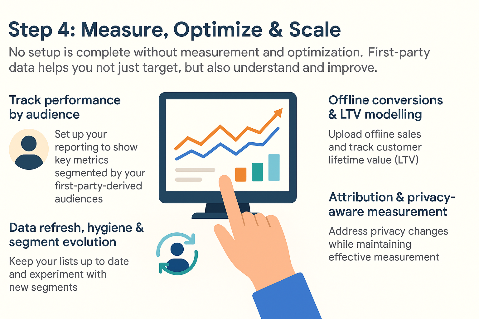 No setup is complete without measurement and optimisation. First-party data helps you not just target, but also understand and improve.